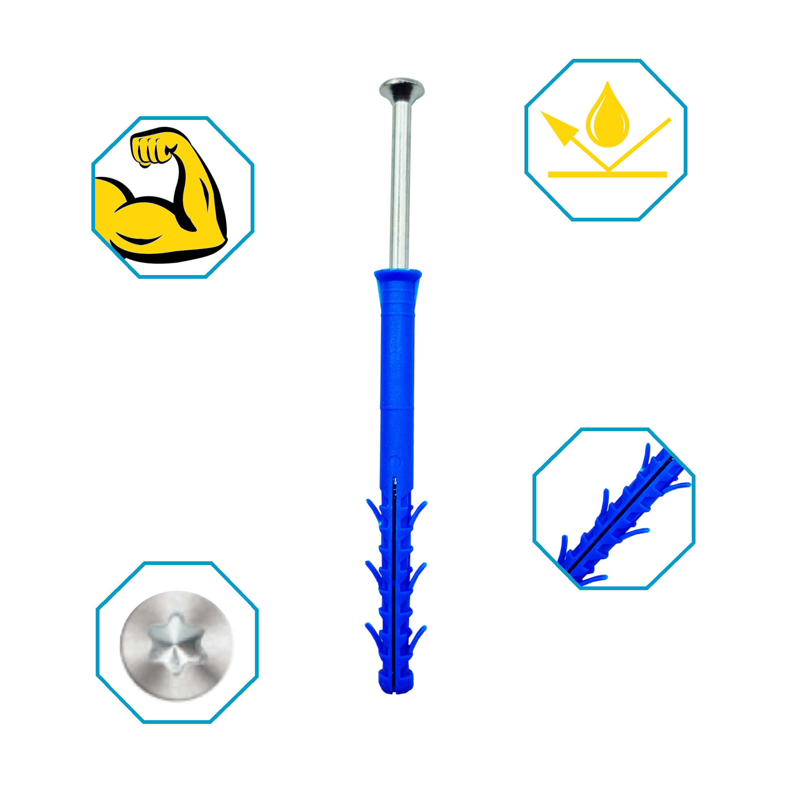 Kołek ramowy z wkrętem z łbem stożkowym LongSpace to innowacyjny element mocujący, który znacząco ułatwia proces montażu w różnych materiałach budowlanych. Jego zaawansowana konstrukcja pozwala na pewne i trwałe mocowanie, jednocześnie oszczędzając czas i energię podczas instalacji.