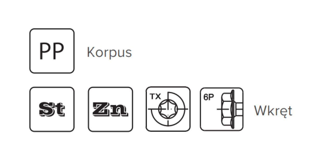 Kołki wykonane z polipropylenu - zaleca się je stosować wewnątrz pomieszczeń, gdzie brak jest niekorzystnego wpływu warunków atmosferycznych oraz dużych dobowych wahań temperatur.
