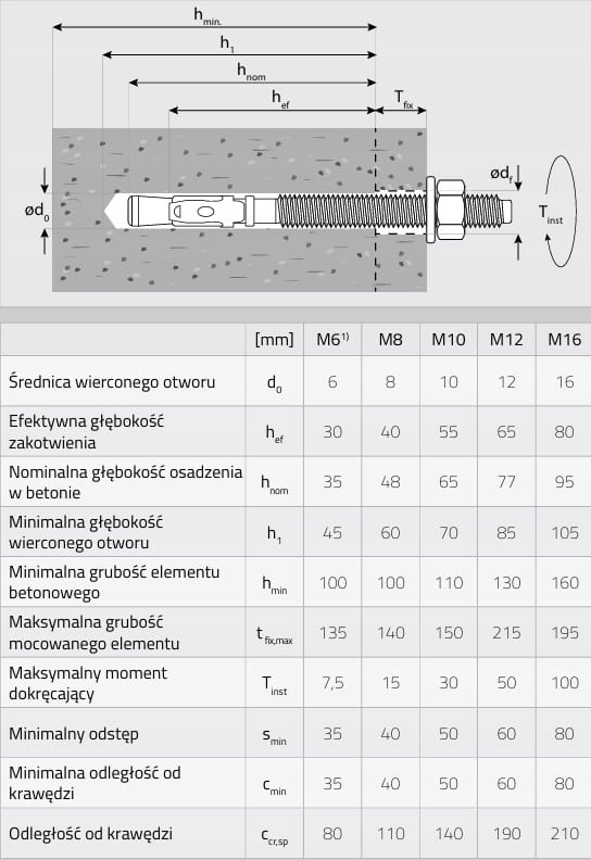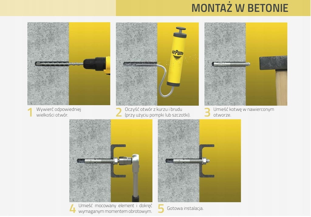 Pierścieniowe kotwy rozporowe wbijane w wywiercony odpowiednio otwór w betonie stosuje się głównie do mocowania w podłożach gładkich oraz twardych.