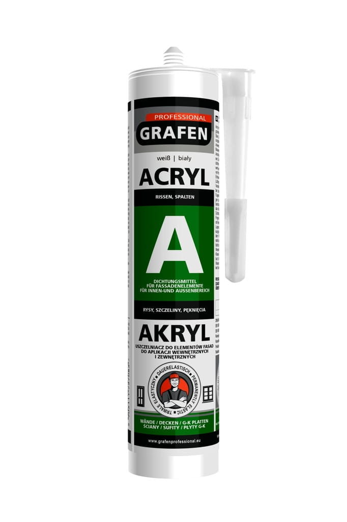 Akryl BIAŁY do wewnątrz i na zewnątrz fasad ,listew, ŚCIAN 300ml Grafen