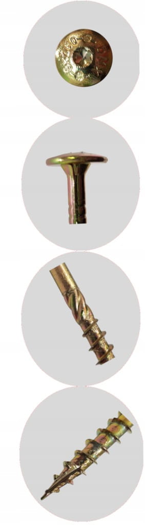 - Karb tnący na całej długości gwintu odpowiada za łamanie wióra oraz przecinanie struktury drewna podczas wkręcania.