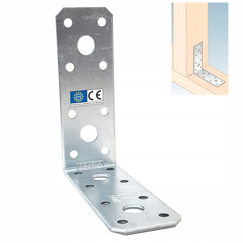 Podstawowe kątowniki do łączenia drewna z drewnem, betonem lub stalą. Różne wielkości otworów zwiększają ich uniwersalność i umożliwiają montaż na różnych radzajach łączników trzpieniowych.