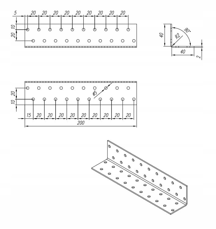 Standardowe kątowniki z uniwersalną perforacją.