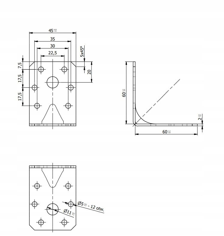 ilość otworów -12 otworów ø5mm, 2 otwory ø11mm