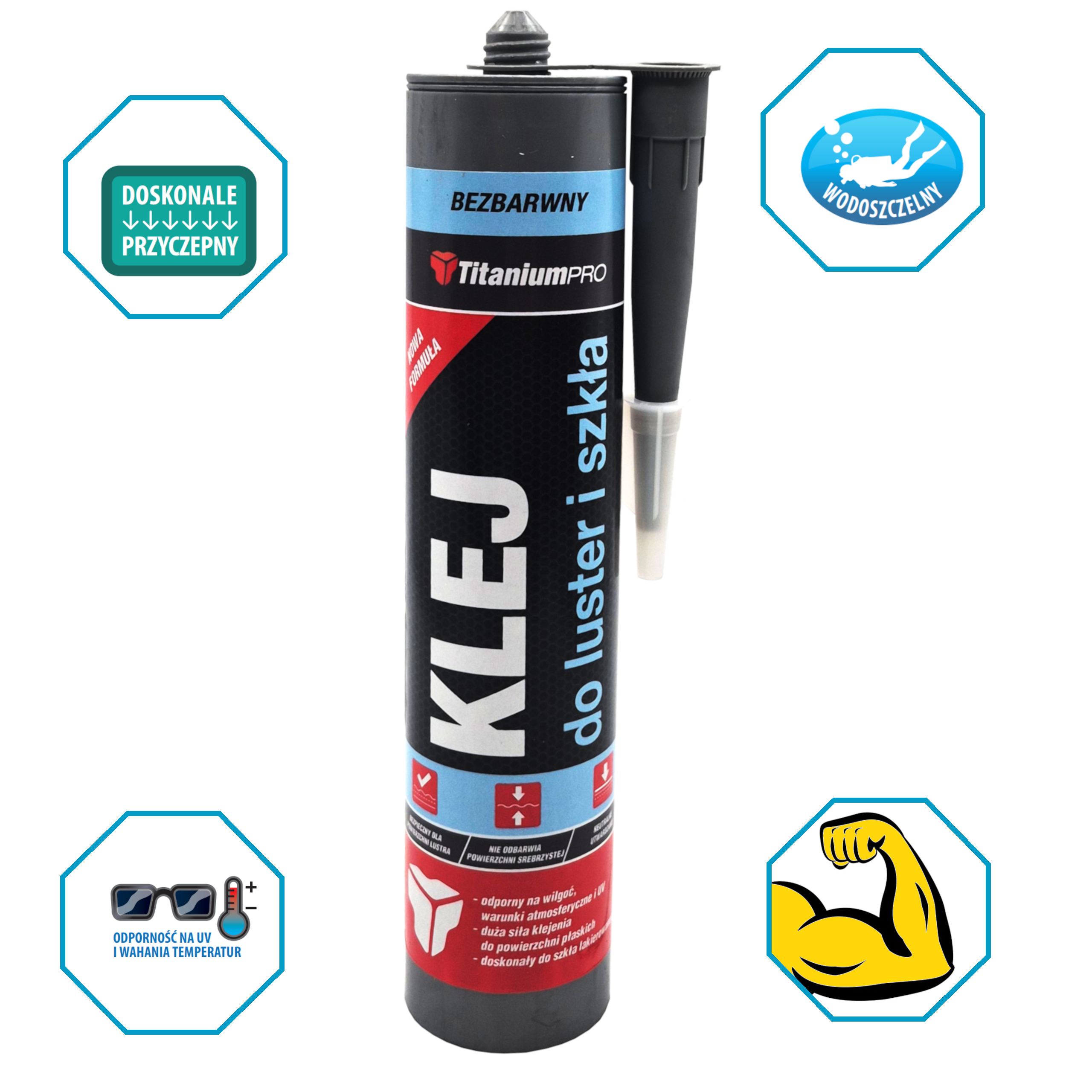 Klej do luster 300 ml silikonowy bezbarwny TitaniumPRO uszczelniacz montaż