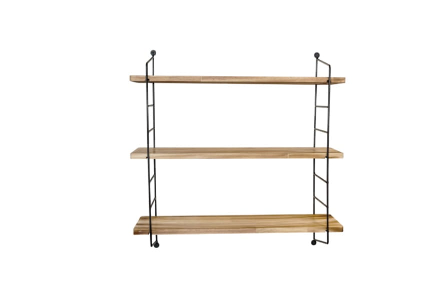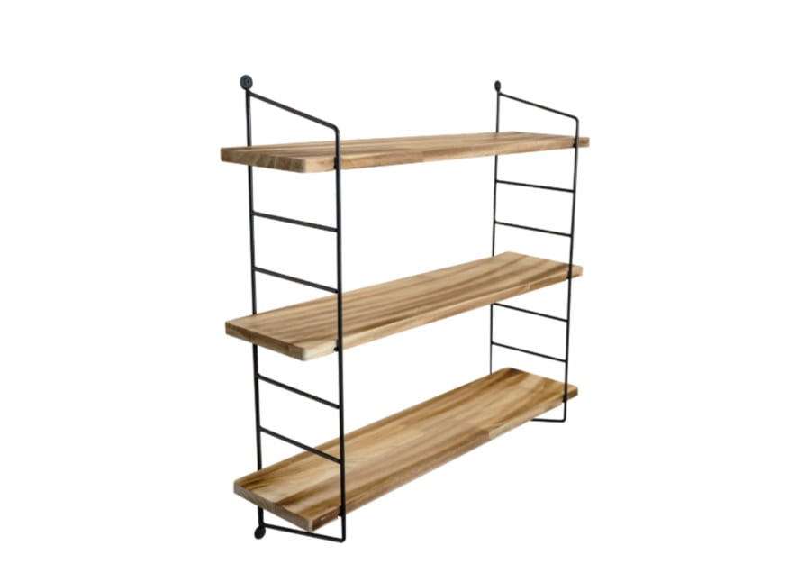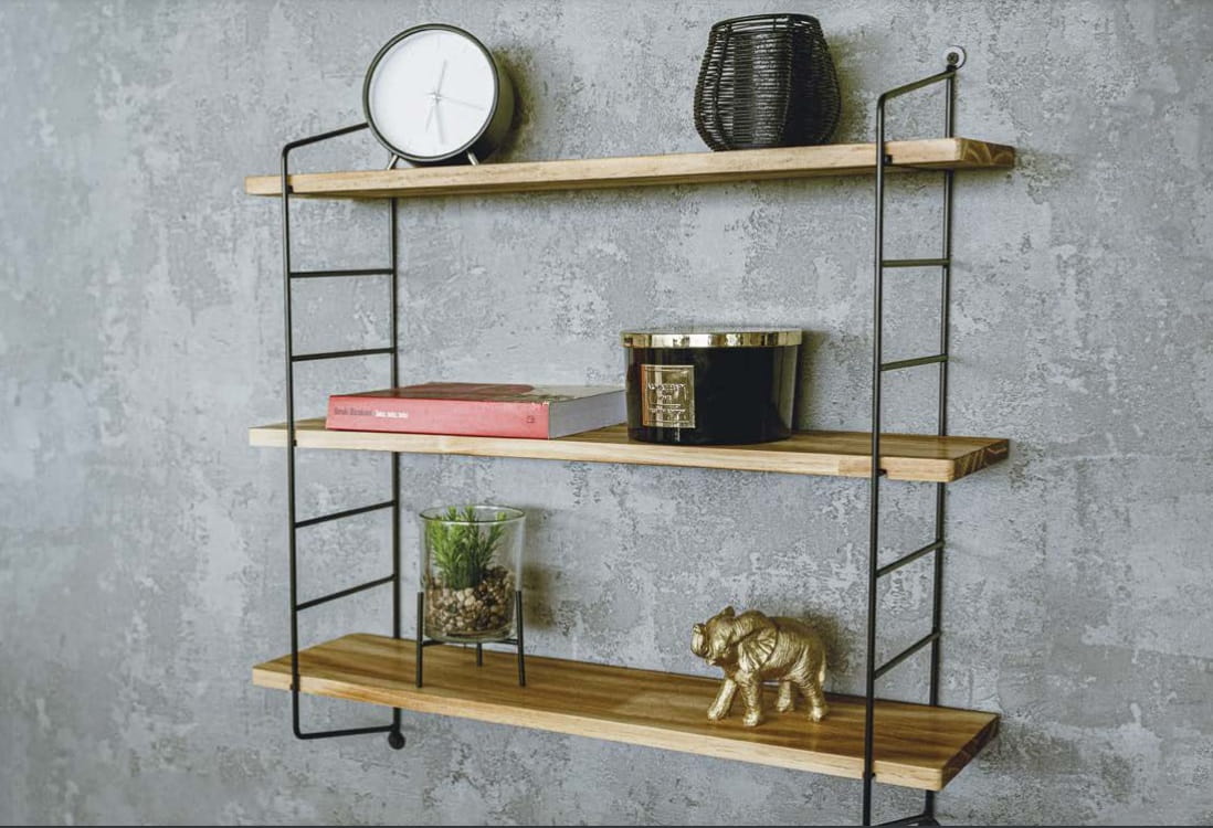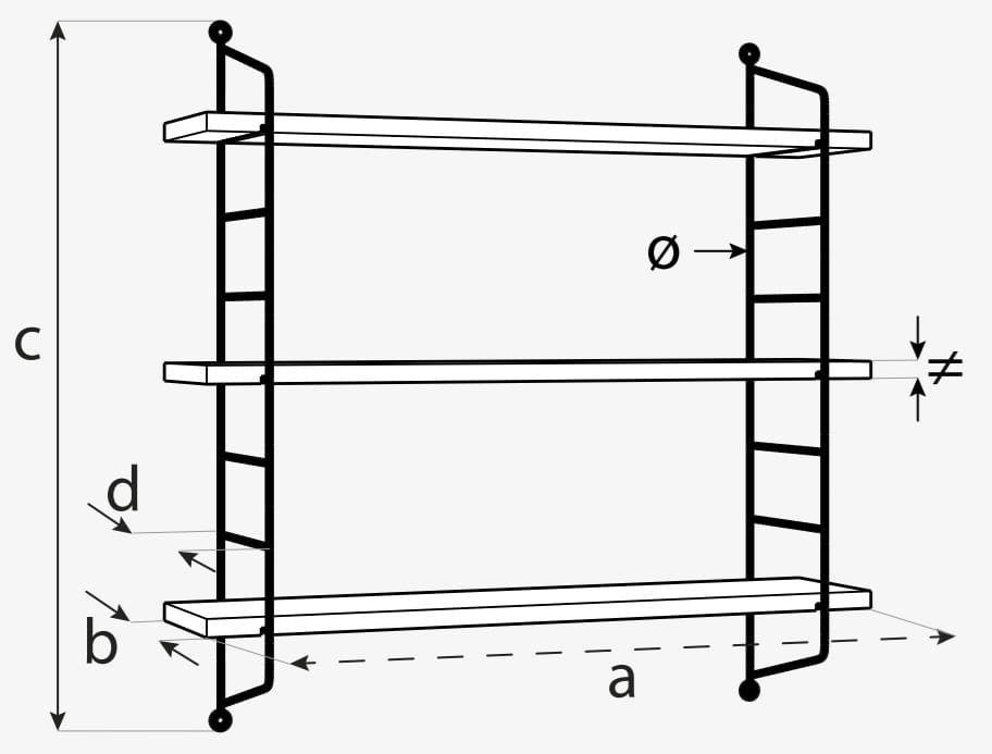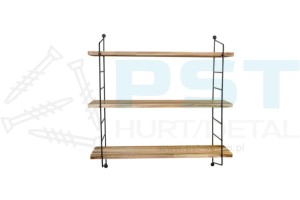 Ścienna półka loftowa, której koncepcja opiera się na wykorzystaniu wykonanej z eleganckich czarnych prętów kostrukcji drabinkowej, na której osadzone zostały trzy równej szerokości drewniane półki. Świetnie sprawdzi się jako mebel dekoracyjny, zapewniający jednocześnie miejsce do przechowywania.