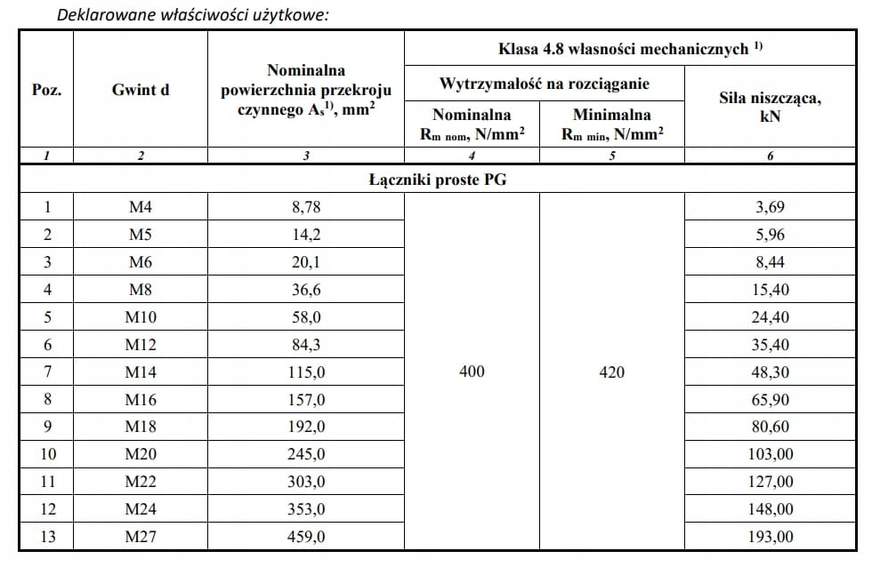 ✓ Oznaczenie typu wyrobu budowlanego: PG klasa 4.8 ocynk galwaniczny