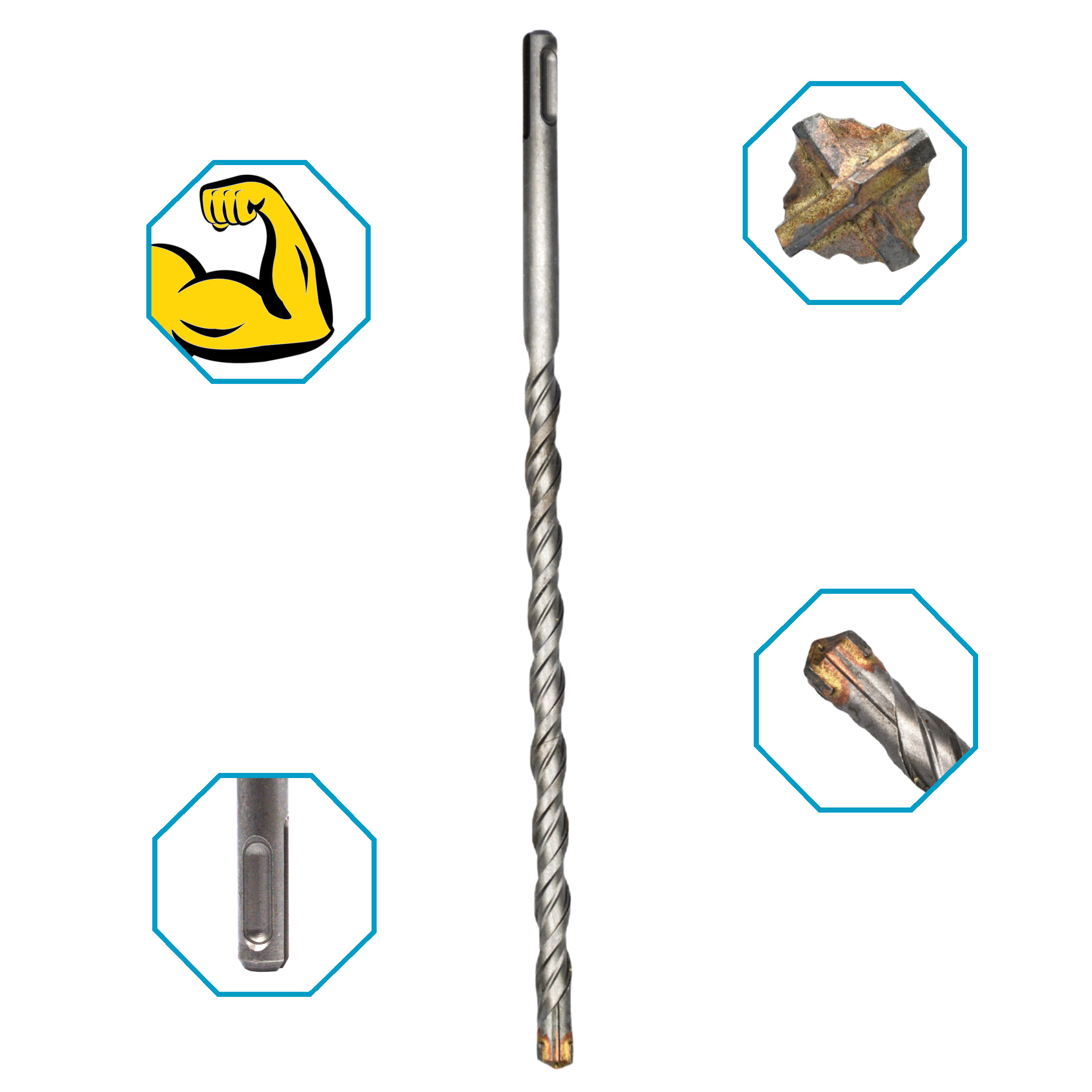 Wiertło do betonu marki Verkatto to profesjonalne narzędzie zaprojektowane specjalnie do wiercenia w twardych materiałach, takich jak beton, cegła czy kamień. Idealnie sprawdzi się w pracy z młotowiertarkami i wiertarkami udarowymi, dzięki systemowi mocowania SDS Plus, który umożliwia szybkie, bezpieczne mocowanie i efektywne przenoszenie sił udarowych.