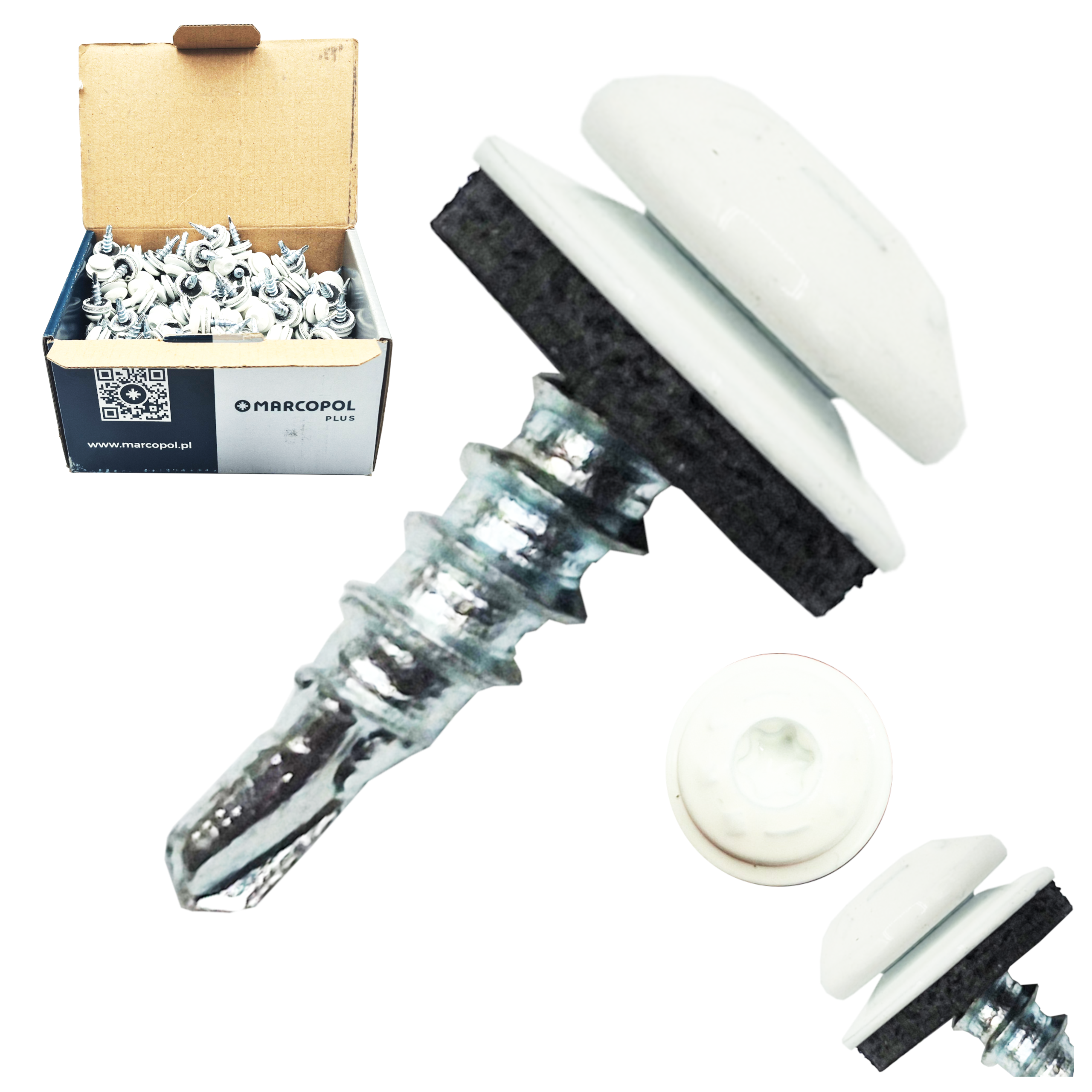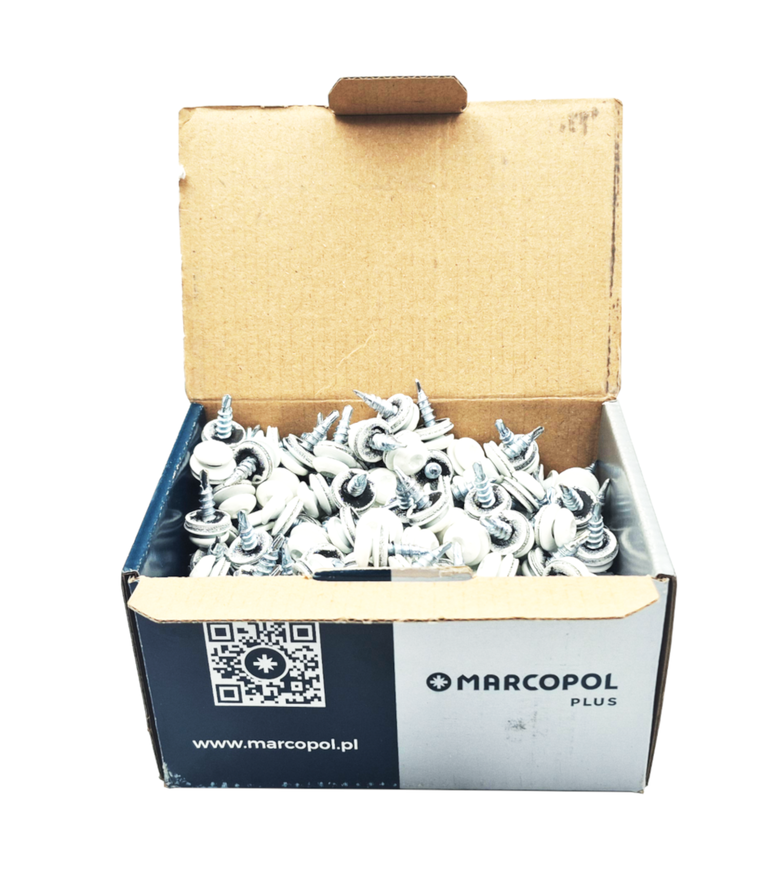 Wkręty farmerskie Marcopol 4,8x20 mm z gniazdem TX i podkładką EPDM to idealne rozwiązanie do szybkiego i trwałego montażu blach dachowych i elewacyjnych. Samowiercące, ocynkowane, odporne na korozję i warunki atmosferyczne.