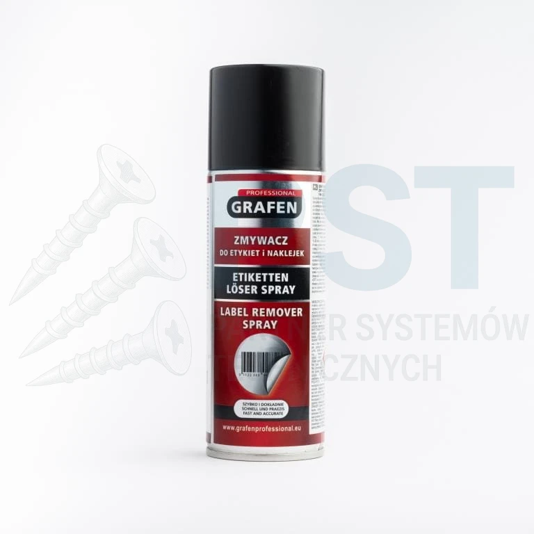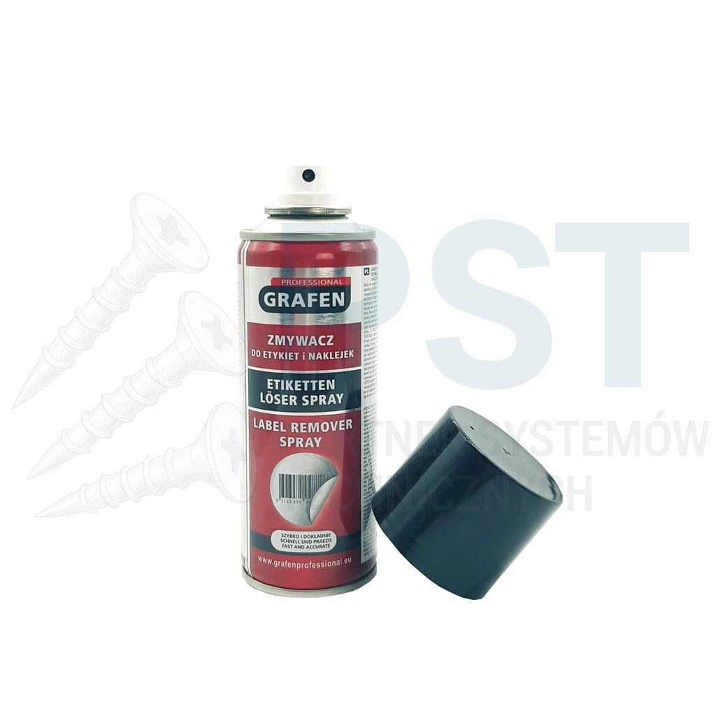 Spray do usuwania etykiet i naklejek Grafen ma specjalną formułę do szybkiego i skutecznego usuwania papierowych etykiet samoprzylepnych na różnych rodzajach powierzchni.