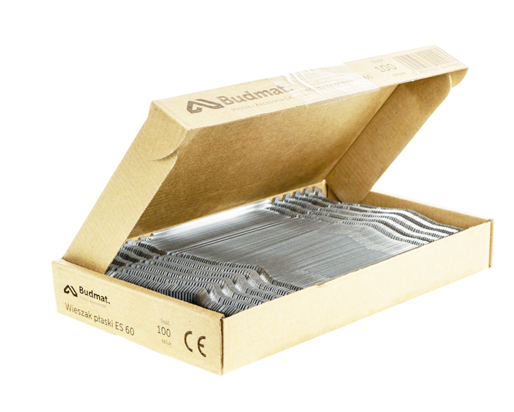 Wieszak płaski Budmat ES to niezawodne i praktyczne rozwiązanie do szerokiego zakresu zastosowań w budownictwie oraz montażu.