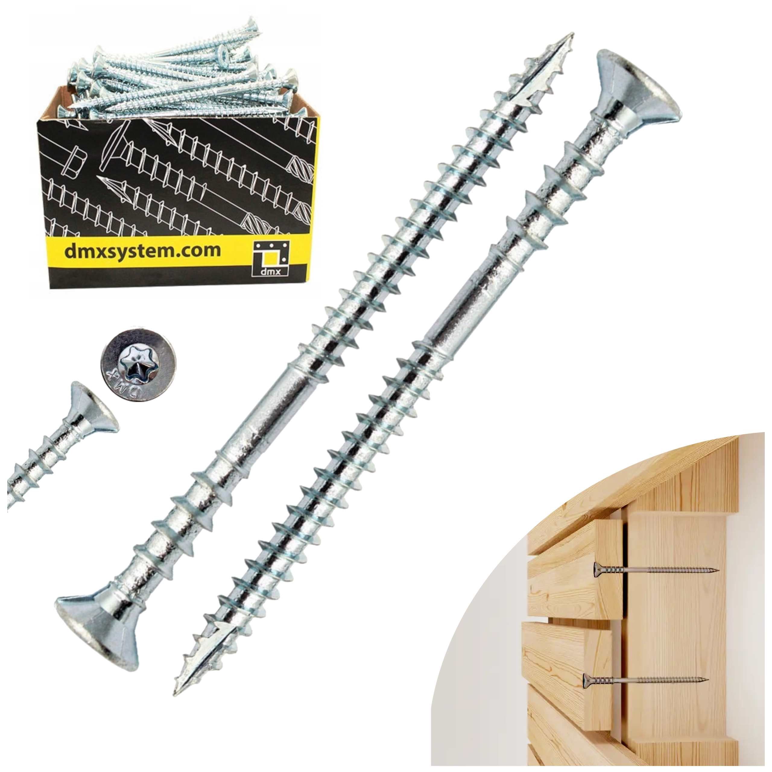 Wkręty dystansowe DOMAX WDS 6×80 mm TORX 30 do poziomowania i dystansowania łat oraz montażu rusztów. Szybka regulacja bez podkładek, stabilne trzymanie w drewnie. Zestaw 200 szt.