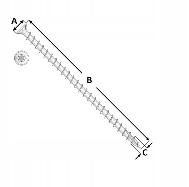Pełny gwint na całej długości wkręta zapewnia bardzo silne dociąganie elementów i zwiększoną odporność połączenia na rozluźnianie pod obciążeniem. Łeb stożkowy umożliwia estetyczne zagłębienie w materiale, a gniazdo TORX gwarantuje stabilne prowadzenie bitu oraz komfortowy montaż nawet przy długich wkrętach.
